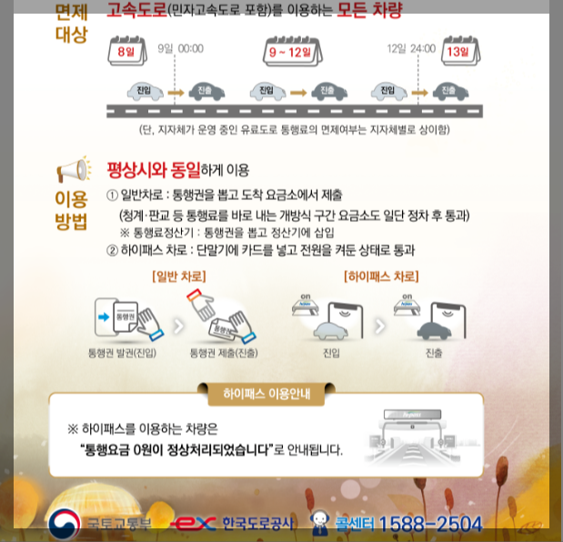 ★추석 연휴 고속도로 통행료 면제 관련 문의